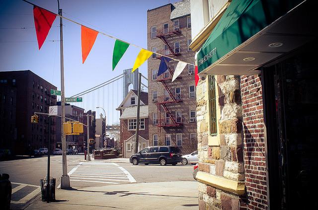 Kde, že to bydlíme? Před roke ma něco jsme se přestěhovali do Bay Ridge, pokud jste někdy viděli Horečku sobotní noci, tak to celý bylo filmovaný u nás, jízda po mostě, tak to je po Verrezano bridge, most spojující Brooklyn a Staten Island a taky nejdelší zavěšenej most v USA, je větší než ten v San Franciscu. Bay Ridge je původně skandinávská a irská čtvrť, ještě pořád tady mají norskej klub, ale teď je to tu spíš Řecko-Italský a to tak moc, že tu lidi na ulici klidně mluví italsky nebo řecky, před Starbucksem na rohu naší ulice vysedávají po ránu důchodci s holema a švitořej pěkně italsky, no přesně jako v Itálii jenom je to v NYC. Máme tu perfektní italský a řecký restaurace a super irský hospody a jeden skandinávskej obchod. Restaurací tady máme víc samozřejmě a některý tak vyhlášený, že se m jezdí z Manhattanu, taky je tu Century 21 oblíbenej outletno prostě je to skvělá čtrvť, kde to žije. V létě nám tu dvě soboty v měsíci zavřou večer jednu avenue a udělá se večerní korzos restauracema venku na ulici a lidma kolem. Taky tady máme průvody, ohňostroje a několik letních večerů je tu letní kino v parku. Vybrali jsme si tuhle čtvrť, protože je pro nás důležitý dostat se ven a tad máme hodně parků a podél moře udělanou cyklistickou stezku, ze který jsou nádherný výhledy na Manhattan, taky jsou tu super školy a je tu bezpečno, to hlavně díky tomu, že tu bydlí hodnš policajtů a hasičů a pak taky ta italská mafie a její šéfové tu mají vily. Přijeďte a ukážu vám to tu.