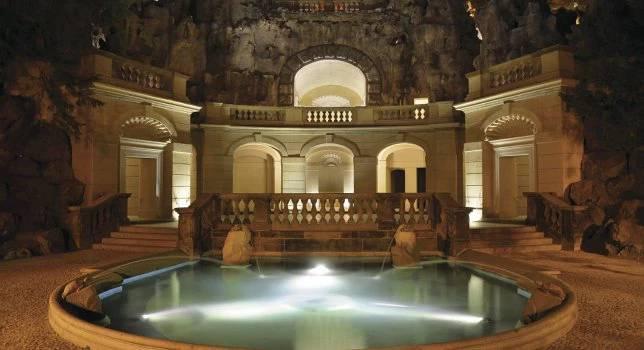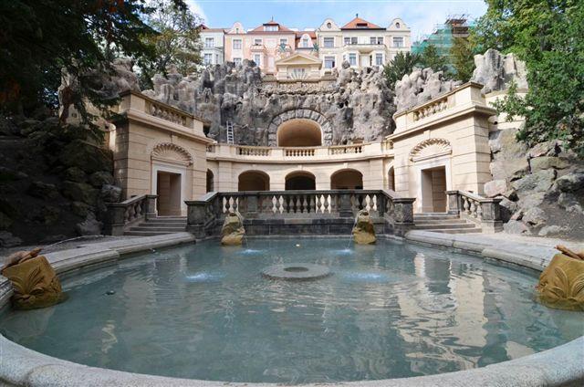 Grotta - Umělá jeskyně grotta byla začleněna do parkového areálu jako romantizující prvek. Samotné stavbě předcházely studijní cesty architekta Barvitia, stavitele Havla a jeho asistenta do Itálie a Německa. Umělá krápníková jeskyně byla nakonec postavena a obklopena skalkami podle modelu Josefa Vorlíčka. Grotta byla kompletně rekonstruována (nákladem cca 40 milionů Kč) v letech 2010 až 2011. Před grottou se nachází kašna se sochou Neptuna od Bohuslava Schnircha. Socha byla řadu let uložena depozitáři a po rekonstrukci byla roku 2014 znovu instalována. V grottě byly natočeny některé scény (netvorův zámek) filmu Panna a netvor z roku 1978.