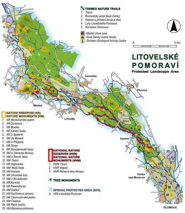 Pro své přírodní hodnoty je CHKO Litovelské Pomoraví součástí evropské soustavy chráněných území NATURA 2000 (oblast CHKO je vyhlášena jako tzv. „ptačí oblast“ s předmětem ochrany ledňáčkem říčním (Alcedo atthis), lejskem bělokrkým (Ficedula albicollis) a strakapoudem prostředním (Dendrocopos medius) a zároveň je tato oblast navržena jako tzv. „evropsky významná lokalita“ pro některé významné druhy živočichů – např. bobr evropský (Castor fiber), vydra říční (Lutra lutra), čolek velký (Triturus cristatus) nebo kuňka ohnivá (Bombina bombina), a pro mnohé z významných biotopů).