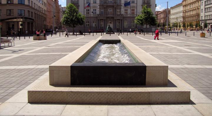 Nyní se posuneme jen kousek od Moravského náměstí a ocitneme se na nově zrekonstruovaném prostranství před Janáčkovým divadlem. To bylo uvedeno do provozu v roce 2014. Odpočinkovou zónu, která ladí s důstojností divadla, si Brňané rychle oblíbili. Na střeše podzemních garáží vznikly vodní prvky, a to fontána ve tvaru divadelní opony a deset vodních trysek, přičemž pouštění vody je synchronizováno se světelnými prvky. Je zde také místo pro posezení a rozsáhlá zatravněná plocha.
