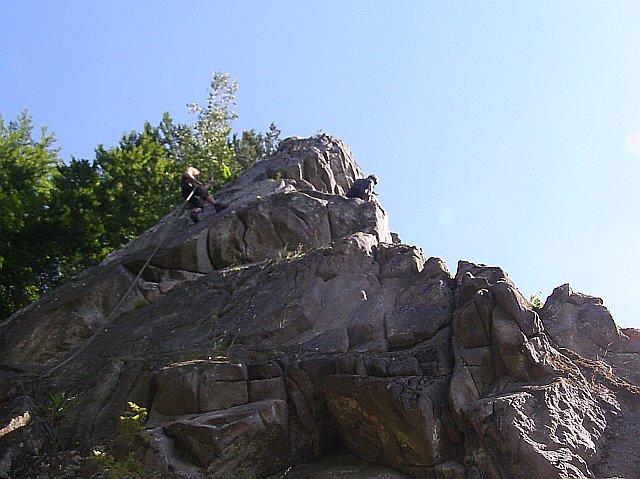 První naše zastávka bude Valova skála. Ta se nachází na severovýchodním okraji Vsetín, cca 3 km od centra města v údolní oblasti zvané Velký Skalník. Lezecky vyhledávaná je především její 35 metrů vysoká západní stěna. Tento významný geomorfologický útvar spatříme už z dálky, pokud budeme stoupat po trase Naučná stezka- Okolo Vsetína údolím Velkého Skalníku. Skála, vystupující ze strmé zalesněné stráně nad koruny stromů vpravo od cesty, působí na první pohled dojmem mohutného skalního bradla. Ve skutečnosti je to přes padesát metrů dlouhá skalní hradba, tvořená pískovci a slepenci, orchidejích a vzácných rostlin, vyskytujících se v jejím okolí. Zdejší specialitou jsou různé druhy lišejníků, které bychom mohli na skalních stěnách spatřit a pokud jsme houbaři, v lesích v okolí skaliska bychom se ocitli v tom nefalšovaném pozemském houbařském ráji! Od silničky k Valově skále, která byla pojmenována podle jedné z usedlostí na pasekách, vybíhá do lesa poněkud strmější chodníček. Jím bychom se přibližně po 80-90 metrech dostali pod úpatí nejvyšší skalní stěny k maličkému horolezeckému tábořišti s ohništěm a dřevěným směrovým ukazatelem. Odsud vidíme, že skála na první pohled připomíná ohromný skalní útes, ale z estetického hlediska nám toho moc nenabídne, neboť nemá při pohledu zdola příliš členitý tvar. Od tábořiště vede k vrcholu Valovy skály okružní a poněkud krkolomný chodníček - rozhodně nic pro ty, kdo mají problémy s chůzí ve strmém terénu či problémy se závratí. My ostatní ale budeme z vrcholu odměněni neskutečně krásným výhledem nejen na údolí velkého Skalníka, ale také na to nejbližší vsetínské okolí tvořené valašskými vršky.