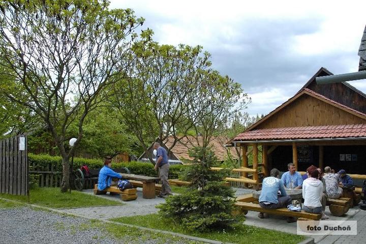 Tesák a Troják - Na rozcestí U Tří kamenů nastává první rozhodování, kterou hospodu zvolit jako první. Vlevo 2 km po zelené stojí u silnice restaurace Tesák, vpravo 5 km po modré stojí u téže silnice hospoda Troják. Interiéry obou zařízení vás ovanou atmosférou dávných časů, vybavení se od dob reálného socialismu příliš nezměnilo. Zdá se, že asi záměrně. Obě hospody rozhodně nemají o návštěvníky nouzi, zvláště o víkendech.
