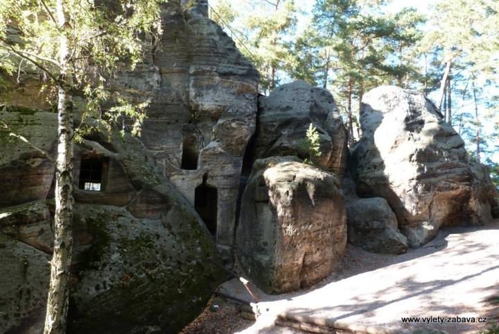dominantou – mohutným skalním blokem, který dal základ středověkému opevnění a později barokní poustevně, jejíž prostory jsou zde zastoupeny nejvíce. Skála přes 30 metrů vysoká a sto metrů dlouhá, byla ve svrchních, téměř nedostupných patrech, dávnými budovateli značně rozčleněna. Ruce kameníků prorazily v hloubi kamene úzké vstupní chodby ambitu a vytesaly prostor kostela, který byl završen věží.
