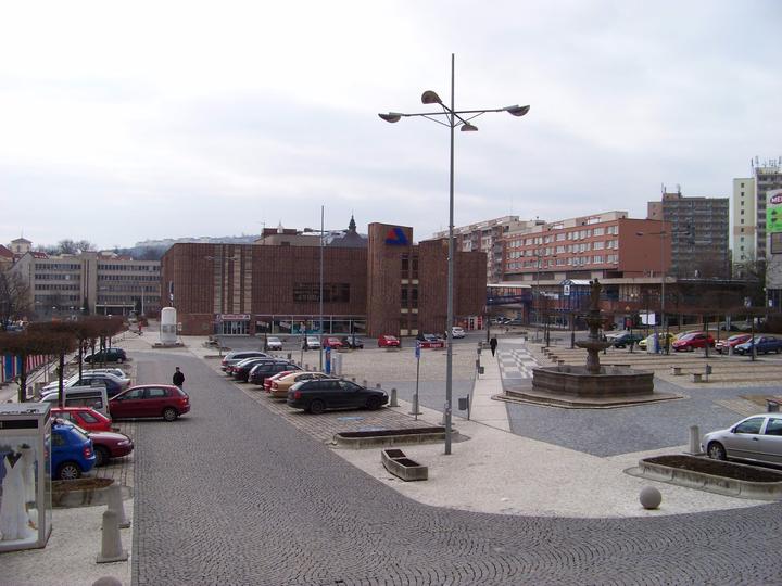Na pátém obrázku vidíme jak náměstí docela dlouho vypadalo. Zdobil ho klasický PRIOR. Ano, ano, toto radši umístili soudruzi namísto oněch domů v dolní části náměstí. Vlevo stála dlouho nedostavěná ruina hotelu - na této fotografii už tam jsou stavební zábrany, protože před pár lety byla ona ruina vyměněna za nové obchodní centrum, a PRIOR rovněž.