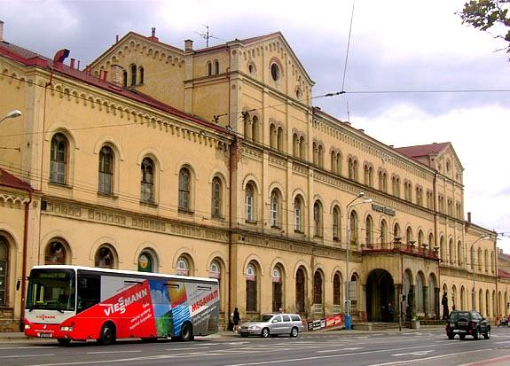 Neopravená budova nádraží! A na jeho jedné straně hospoda, na druhé hnusný Army shop a sekáč! A před ním rušná víceproudá silnice!