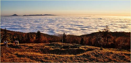 Ale když je ve městě opravdu husté šedavo, zkuste vyjet nahoru na Komárku a když se vám poštěstí, můžete spatřit nádheru jako na dalších obrázcích. My to zkusili hned první rok co jsem tu bydlela a byla to nádhera. A před pár lety jsme si vyšli v podobné mlze na Milešovku a to jsme vůbec nečekali, co nahoře spatříme. Normálně ty polštáře měly různé tvary kopců, jakoby obrovských vln, no zážitek lepší než kdyby byla perfektní viditelnost 🙂 Takže je to vlastně teplické štěstí v neštěstí.