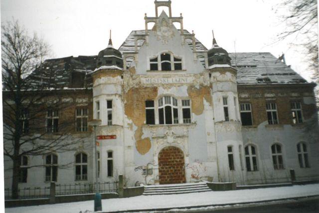 Podle internetu mrzí "většinu Tepličáků" zbourané městské lázně. Vybrala jsem fotku z doby před zbouráním, dnes je na jejich místě zelený plac a místo zřejmě čeká na "oživení". Podle majitele objektu ohrožovaly bezpečnost, myslím...