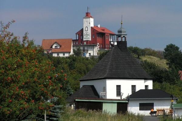 Přidávám dobový obrázek netradičního "hradu" Škvárovník (Schlackenburg), který zde v letech 1805 až 1826 postavli zednický mistr ze spečených kazových škvárových cihel z místních cihelen. Stavba je svým způsobem krásná a brzy proto získala evropský ohlas, například Bedřich Vilém sem dokonce jezdil každoročně. Později sloužila jako výletní restaurace s letní zahradou. Bohužel od roku 1980 chátrá, ale podle jednoho článku na internetu se tam dá vlízt celkem i beze strachu že vám to spadne na hlavu...