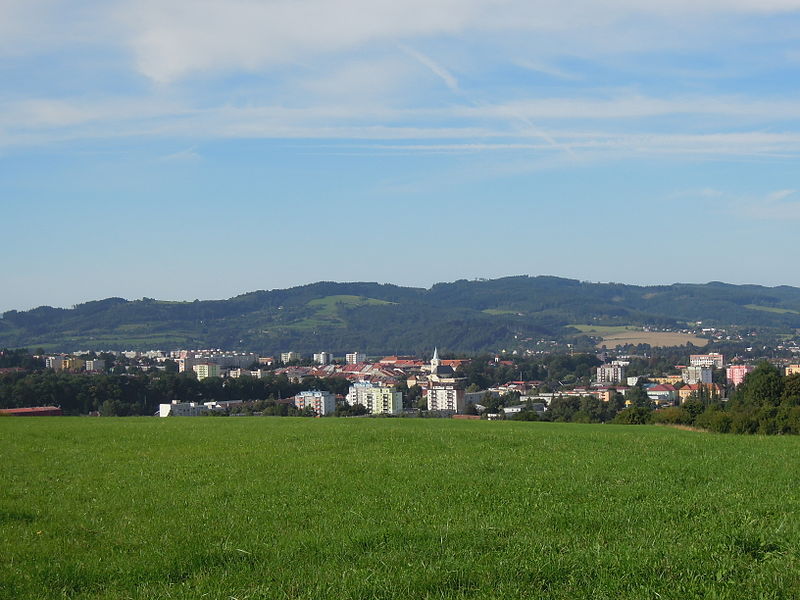 Pohled na Valašské Meziříčí z vrchu zvaného Helštýn