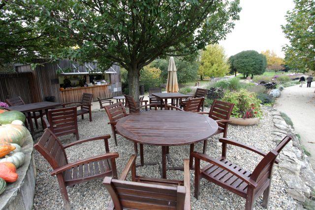 V botanické zahradě se nachází čajovna U Cesty a dvě občerstvení, kde je možné posedět. Stánek má v nabídce několik druhů jídel připravených na grilu, osvěžující nápoje, kávu z kávovaru, čaj, cukrovinky či zmrzlinu. Klidné občerstvení v krásném prostředí botanické zahrady vaši návštěvu jen zpříjemní.