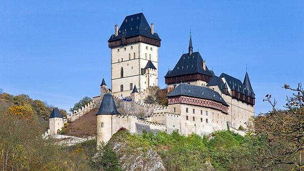 Druhou stanicí 10 minut od Berouna a 40 minut z Hlavního nádraží v Praze je Karlštejn. Je to prostě nejhezčí hrad, který nechal postavit v roce 1348 letošní jubilant Karel IV. kvůli ochraně říšských korunovačních klenotů a svatých ostatků. Prošel různými přestavbami obéháním, byl i dobyt švédským vojskem a nakonec v duchu purismu přestavěn Josefem Mockerem. Na hrad nikdy nebyl zakázán vstup ženám, jak bylo v Noci na Karlštejně od Jaroslava Vrchlického 🙂, dokonce byl převeden do užívání českých královen.