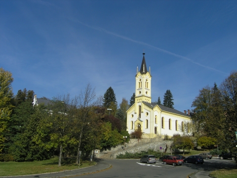Kostel ČCE- dolního sboru- evangelický kostel sboru (dříve luterské či augsburské konfese) byl postaven v l. 1782-1783 po vydání tolerančního patentu v roce 1781 a je jedním z mála dochovaných tolerančních kostelů. R. 1782 byla vystavěna škola a r. 1784 budova fary. Po rozdvojení evangelické církve na augsburskou a helvétskou v roce 1784 sloužil kostel oběma konfesím, což bylo nutnou příčinou sporů. Tyto byly odstraněny až stavbou helvétského kostela v roce 1827. Věž kostela byla dokončena r. 1881. R. 1882 byly na ni zavěšeny 3 zvony ulité v Bochumi. Tehdy kostel získal dnešní vzhled. Interiér kostela byl postupně budován v l. 1881-1898. Obě konfese se sloučily v roce 1923 v jedinou církev českobratrskou evangelickou. Naposled byl opravován v l. 1999-2000.