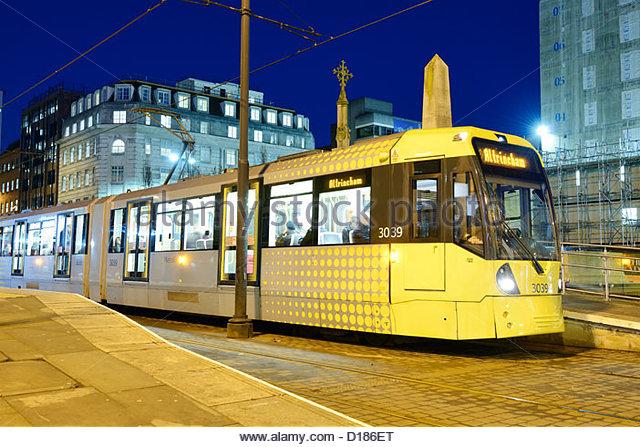 Manchester není vybaven systémem metra,ale existuje zde tramvajový systém dopravy zvaný Manchester Metrolink.