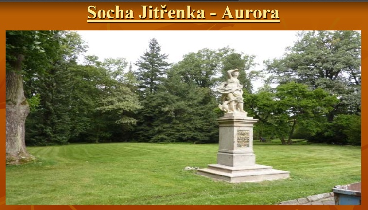 V blízkosti kolonády byla postavena pískovcová socha Aurory,která stávala v zahradě „V ráji“ v Klatovech č. 181. Je to dobrá baroková práce z polovice XVIII. Stol., která má na podstavci latinský nápis tohoto znění: „Vznešená jitřenko, zvěstujž růžovými svými ústy vděčnou paměť obce klatovské zakladateli tohoto sadu velezasloužilému předsedovi klatovského kraje Františku hraběti Mercandinovi“.