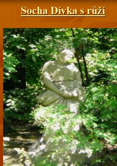 Další sochou je Dívka s růží. Socha je umístěna na ostrůvku v parku, autorem je Vilém Glos (1923 – 1924), opravena kameníkem Václavem Králem (v roce 2005).