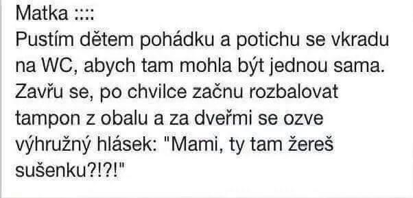 Pepíček se ptá maminky "A maminko, kdybych se ti narodil zadečkem, tak bych se jmenoval Peprdýlek?"🙂))))