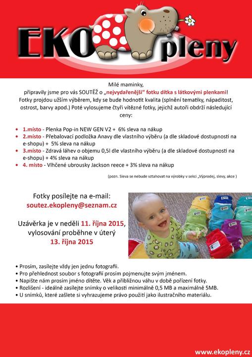 Dnes jsme spustili na ekoplenách soutěž. Posílejte fotku svých potomků v látkových plenkách a můžete vyhrát plenku Pop-in, přebalovací podložku Anavy či jiné ceny. Více informací v našich článcích...