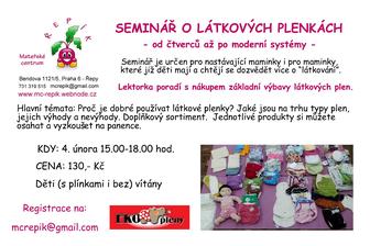Byli jsme požádáni o spolupráci MC Řepík na Praze 6-Řepy, kde budeme 4.2. povídat o látkových plenkách... Přijďte se podívat!!