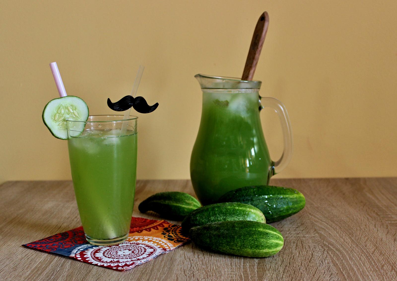 6. Před podáváním limonády můžeme do džbánu ještě přidat lístky bylinek a sklenici ozdobit kolečkem okurky.