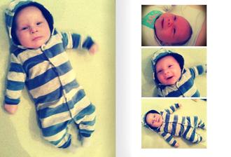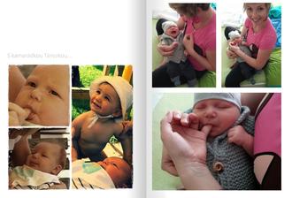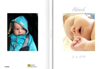 V HAPPY FOTO měli akci na knihu o 48 stranách za 199,- tak jsem Adámkovi musela jednu vyrobit a nechat jich pro babičky a tetičky několik vytisknout 🙂 Tady je.... první obrázek jsou desky a pak jednotlivé dvoustránky. Je to Adámek 1 - 5 měsíců.