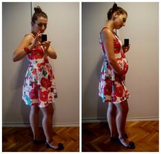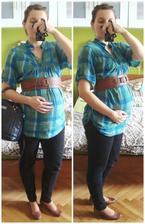 Skříň se během devíti měsíců pomalu ale jistě vyprazdňuje a člověk den ode víc a víc zápasí s tím, že nemá co na sebe. Jak to udělat, aby přežil, nemusel investovat horentní sumy do těhotenského oblečení, které stejně ve většině případů nestojí za moc, a přitom nechodil pořád v jednom? Já zatím sázím na šaty. Kupodivu se i s břichem dá pohodlně vejít i řady do netěhotenských modelů koupených v běžných obchodech... vlastně už si ani nepamatuju, kdy naposledy jsem na sobě měla kalhoty 🙂 Nutností posledních dní se mi stal pásek, aby to vypadalo, že mám aspoň nějaký pas, ačkoliv se posunul o hodně výš. A široká sukně na zakrytí stále bujnějšího pozadí a kypřejších stehýnek 🙂