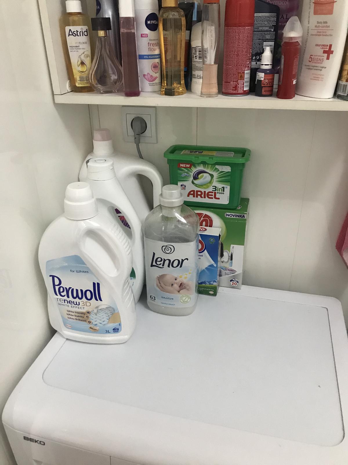 holky jak skladujete prací prostředky v bytě kde je malá koupelna? mám to za košem na prádlo a syn to našel tak uvažuji že to dám na pračku