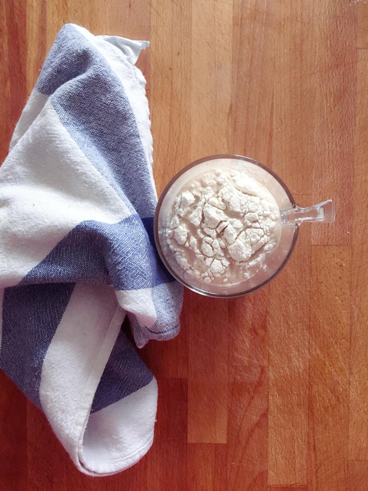 Po deseti minutách by kvásek měl zdvojnásobit svůj objem, mít bublinky a příjemně vonět po kvasnicích.
