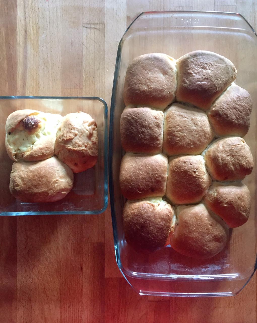 Buchty požadované propečenosti a barvy vyndejte z trouby, a nechte je zcela zchladnout. Jak vidíte, mě jedna buchta praskla, ale její „kamarádky“ ji podržely, takže náplň nevytekla.