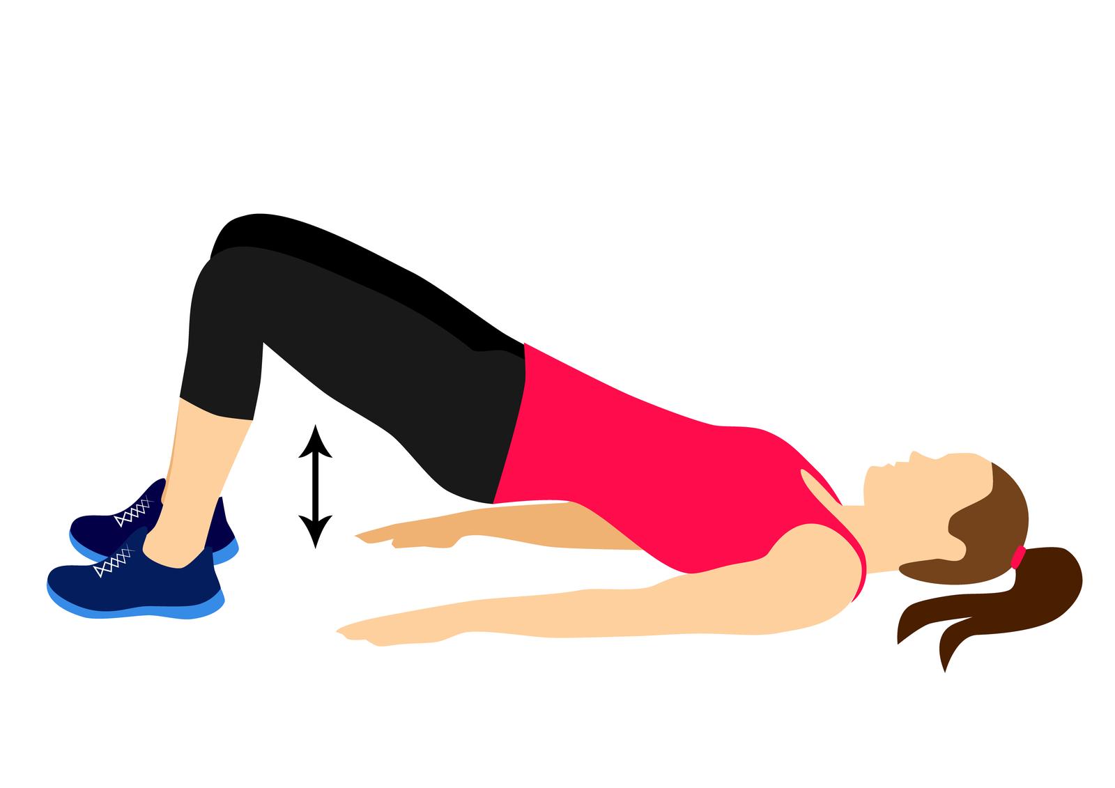 Lehněte si na záda, ruce ejte podél těla, pokrčte nohy a dejte paty na šířku ramen. Zvedněte zadeček nahoru, kde jej pevně zatněte. Jako kdybyste měla mezi půlkami sevřít lískový oříšek a nepustit. Vydržte 2 sekundy a poté spusťte zadeček pomalu dolů. Nenechte ho ovšem odpočívat a držte ho pár centimetrů nad zemí. Cítíte, jak příjemně táhne? To se vám tvaruje do plavek.