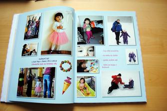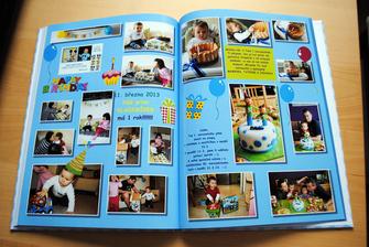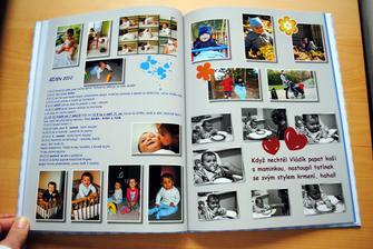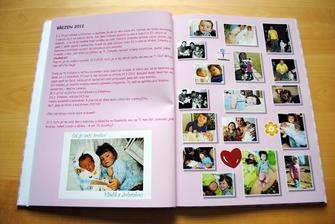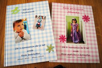 Zjistila jsem,že žádná z těch předtištěných dětských deníčků nám rozsahem nevyhovují, tak jsem se rozhodla tvořit dětem vlastní fotoknížky, vždy po roce. Se zápisky jejich vývoje, přebrebty, hláškami, s oblíbenými nebo povedenými fotečkami. A psané, tvořené s láskou. Originální. Od srdce 🙂