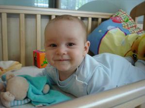 Jmenuju se Michal a narodil jsem se v pátek 13. února 2009 ve 13:54 hodin v porodnici ve Vsetíně s mírami 3750 gramů a 53 centimetrů * ve čtvrtek 19. února nás konečně pustili domů * 26. února jsem byl poprvé v poradně a protože jsem velký gurmán, vážím už 4170 gramů a měřím 54 centimetry * 19. března váha ukázala 5130 gramů a povyrostl jsem se na 58 centimetrů * jsou mi dva měsíce a moje míry jsou 5850 gramů a 61 centimetr, přestaly mně trápit prdíky, už bylo na čase 🙂) * 19. května - 6740 gramů a 64 centimetry, kdyby měl zhojené očkování po TBC, mohl jsem dnes dostat první Hexu, takhle ale musíme počkat * 16. června už vážím úctyhodných 7490 gramů a měřím 66 centimetrů * poradna 14. července - 8550 gramů a 70 centimetrů; začal jsem večer dostávat k mlíčku taky trochu kašičky a mooooc mi chutná * 11. srpna jsem byl na půlroční prohlídce, jsem velký šikula a to velký je fakt na místě - 9220 gramů a 70 centimetrů 🙂) začal jsem papat zeleninku a taky masíčko a všechno mi to mooooc chutná, jenom ovoce fakt nemusím 🙂 * 8. září a 9690 gramů * 25. září jsem vycestoval za hranice do sousedního Slovenska a pár dnů jsem si užíval v Tatrách, bylo to žůžo * 13. října jsem překonal deset kilo - 10170 gramů a 74 centimetry * je mi rok, vážím 11250 gramů a měřím 82 centimetry 🙂 * 25. března jsem začal sám chodit *