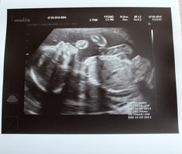 3.6. 4D ultrazvuk v Heliosu, moc mila pani doktorka, ale kozena nase mela celou dobu nacpane nozky pred ksichtikem, dumlala si palecky u noh, popripade si tam nacpala jeste i rucicky. Nepomohly drepy, poskakovani - nic. Mame cca 20 min video, kde jsou ovsem videt jen zablesky obliceje, ale i tak to stalo za to 😉 Holcicka potvrzena i tady, vazi pres 800 g.