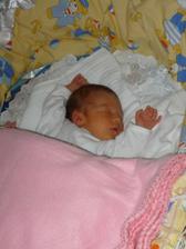 Píchla mi vodu......a říkala, že můžu zavolat manželovi, ať do hodinky dojede........o 20 minut později jsem měla tlak na tlačení,t ak jem to řekla porodní asistence, ta se podívala, a že prej rodím.......tak šupky na porodní sál........na dvě zatlačení byla princezna venku........narodila se ve 14:31, doktor ani tatínek to na porod nestihli........Adélka vážila 2730gramů a měřila 47cm, byl to ten neúžasnější den...........