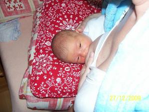 Původní termín byl 24.12.-19.12 jsme jeste byli u rodičů,donést jim dárky,a říkala jsem že ted už můžu začít rodit,nejlépe v neděli at jsme do vánoc doma.To jsem netušila že mne Lukášek vyslyší...Takze ve 23h cca zacaly mensi stahy+odchazet hlen.zatka....o pul 2 rano zacala odchazet voda,ve 2 prijel manzel z prace a jelo se.Puvodni porodku jsme minuli pač meli stop stav. te druhe meli nejaky problem s potrubim prasklym takze taky nebrali,tak honem do te posledni,nejvzdalenejsi ale nejlepsi(jsem moc rada ze jsem nakonec rodila tam)Natocili nam srdicko,pak sepisovani ruznych papiru snad na trikrat!Uz jsem mela stahy po 6 min.ale byly este snesitelne.V 6h na pokoj-i s manzelem.Kontr.silily...pak epidural-ten moc nepomohl....a od pul 12 do 12:45 jsem tlacila,chvilema prodychavala-byla to teda fakt síla!!!.Maly se nakonec narodil za pomoci pumpy,protoze i kdyz byl pekne hlavou dolu tak mi sel z prave strany,coz pry neni optimalni a pletla se mu tam k hlave rucicka.Tak kdyz zacal mit spatne ozvy tak doktori uz na nic necekali....ja snad po sté ale naposled moooc zatlacila-a prcek byl venku!!!Par minut mu davali kyslik,nakonec se bobek rozdychal....Potom jeste nejake šití-taky nic prijemneho....2h odpocinku a pak na pokoj.Maleho sem videla 2 krat ten den,druhy den mi ho donesli az uz byl pak jen se mnou.Na stedry den jsme si privezli domu ten nejkrasnejsi darecek jaký jsme si mohli přát....