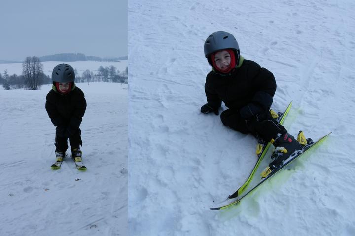 Tak dneska prvně v životě na lyžích a je to prý lepší než bobování a bruslení! 🙂 Mám radost, že se nebojí spustit z kopce a hlavně, že to Danečka baví!!!!