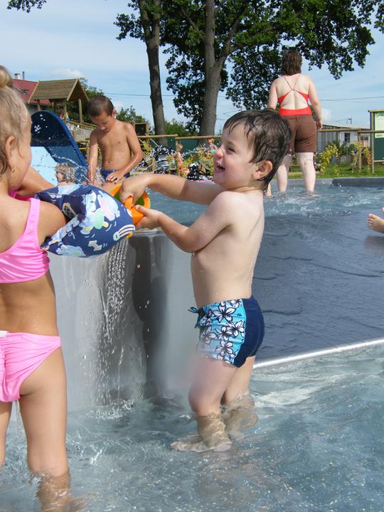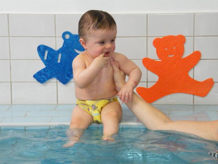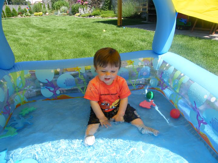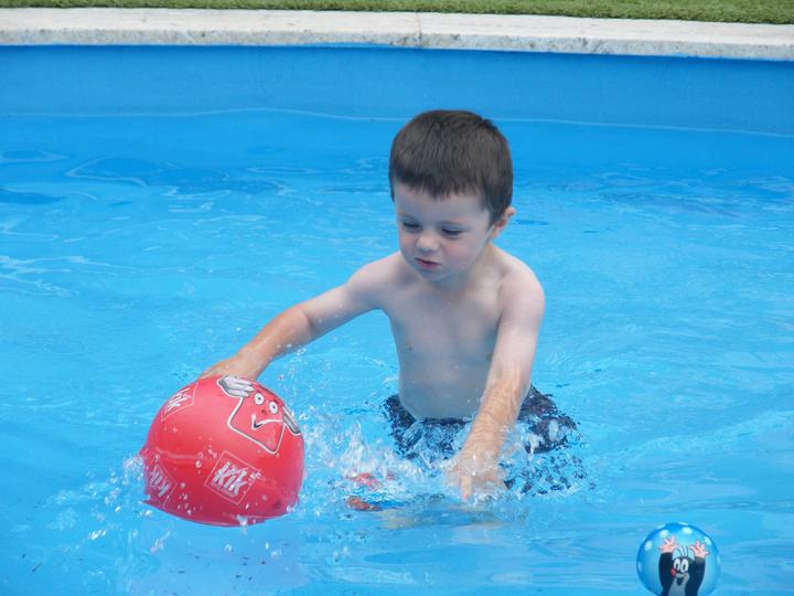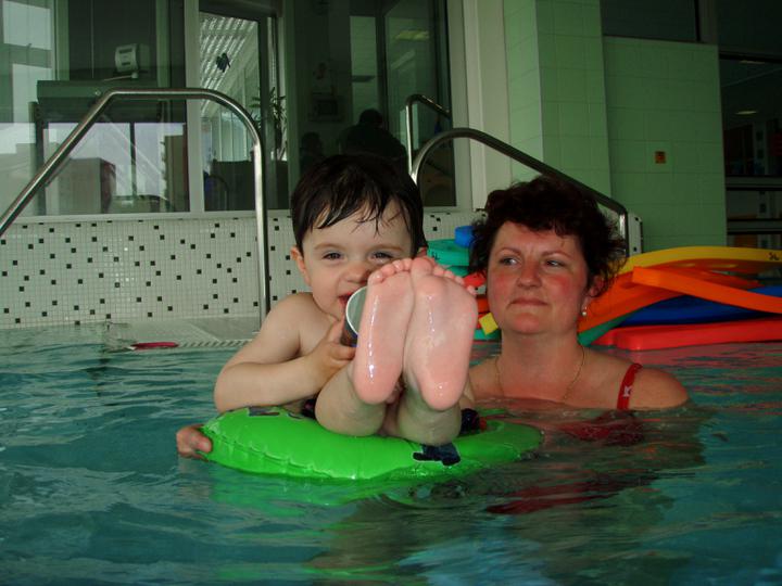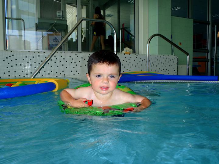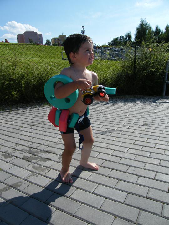 Tak dnes jsem Danečka dala paní plavčici a maminka odešla pryč. Daneček-šikulka vůbec nehledal mamku a sám plaval s ostatníma dětičkama celo 3/4hodinu! 🙂