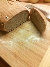 Klasika kvásek, a 200 g jedné, 200 g druhé mouky, 130 ml vody, 20 g mléka, 20 g oleje, 9 g soli, kmín. Peče se 10 min. na 230 st. a potom 30 minut na 160 st., recept není můj, ale kamrádky, tak doufám, že jí to nebude vadit 🙂 Je to můj druhý chleba..