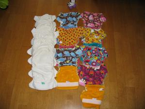 Ještě mám 5 ks novorozeneckých kalhotkových plenek od Anavy - dalo by se to označit za dárek z dřívějška + dokopena jedna Totsbots Teenyfit (novorozenecká AIO - ta je boží 🙂 )