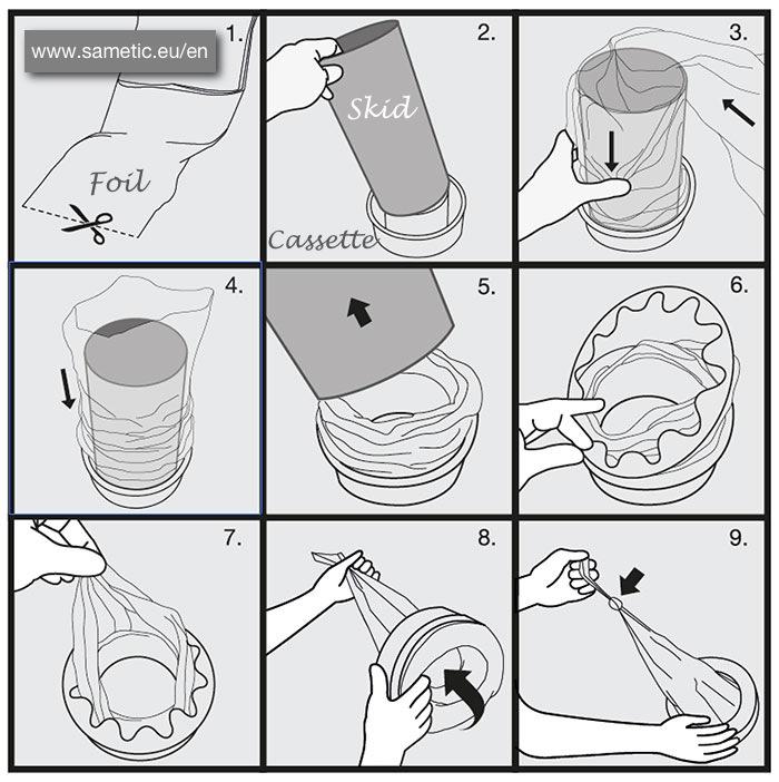 Fólie je silnejší než originální fólie, pro zvýšení bezpečí při manipulaci a vyprázdňování koše. Naplnění kazety fólií je rychlé a snadné – viz. návody.
