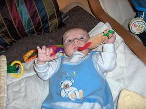 16.12.přišla pani na první vaničkování-moc mě chválila že jsem ve vodě vydržel tak dlouho,že prý takhle dlouho poprvý miminka nevydrží a pláčou ale já sem si to moc a moc užíval,mamka mi i polívala na heslo hlavičku a já to zvládl na 1,prostě sem vodní živel a už se těším až zas půjdu do velký vany.