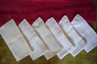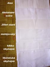 libštátské- zdají se mi řídké, málo hutné, mají hrubou strukturu jako matějovský, jeden okraj hustý druhý obšitý, ale jakoby ručně, takže se po opakovaném praní bude třepit jako u 25let starých plen
