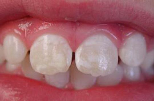 Už jste slyšeli o fluoróze? Jde o poškození buněk tvořících zubní sklovinu, které vyvolává příliš velký přísun fluoru v období mineralizace skloviny - tedy při růstu zubů. Vyskytuje se na mléčných zubech dětí, ale může se vytvořit i na druhých zubech, pokud je při jejich růstu (v prvních osmi letech života - v době, kdy se zakládá a vyvíjí stálý chrup) přísun fluoru stále nadměrný.