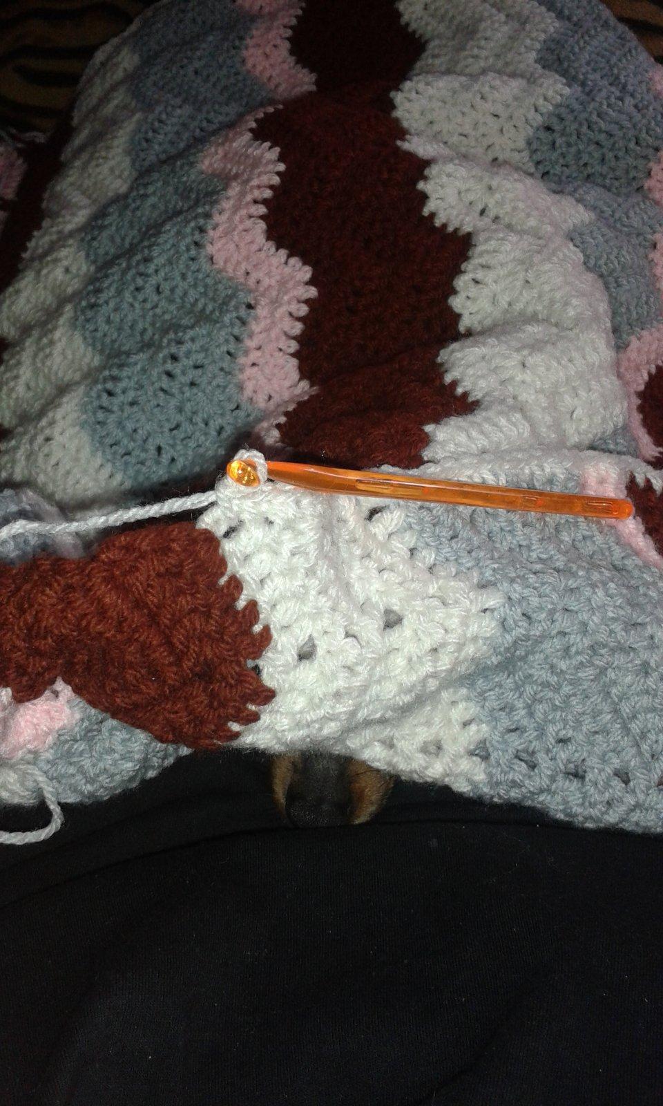 Dokončuji deku a pan pes se pod ni nasomroval. Za dva měsíce už dostane do zubů 🙂. Mimi se asi nebude tahle poloha líbit.
