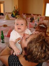 25.8.2007 Jsem byla pokřtěna v kostele Nanebevzetí Panny Marie v Sebranicích.Za kmotry mě šel strýc Jirka a teta Tereza.Pokřtil mě pan falář Pavel Kafka,který zároveň oddal mé rodiče.