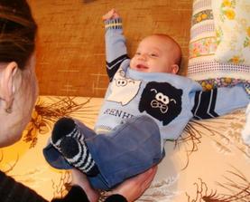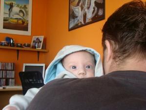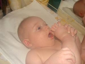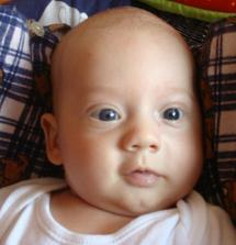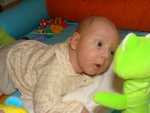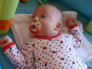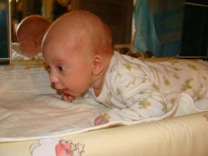 ..Matulka se narodil 1.7.08 (36+4), vážil 3,18kg, měřil 50 cm, což nebylo málo 🙂 Pár hodin po porodu se ale vyskytly komplikace, pomalu se mu vstřebávala plodová voda, proto byl umístěn do inkubátoru a napojen na kyslík. Měl potíže i se zažíváním, takže mu byla podávána výživa kapačkami. PO dvou dnech mu začaly sestřičky dávat moje mlíčko stříkačkou a Matulka se začal lepšit. Nicméně zhubnul přes 40 dkg, a byl hodně vyčerpaný. V inkubátoru strávil týden. Po té ho dali do postýlky, ale pořád přespával u sestřiček na novorozenecké JIPce. CHodila jsem za ním každé tři hodky, kdo zažil, ví, kdo nezažil toho děsit nebudu, ale vzpomínky na tuto dobu nemám nejpříjemnější. Další týden jsem si ho pak mohla ´půjčovat´ - vlastní děťátko.. Bylo to nejkrutějších 14 dní v mém životě. Nicméně ted je Matulkovi skoro 8 týdnů a všechno dohnal, v lecčem je dokonce napřed. Je to velmi živé, veselé a věčně hladové miminko 🙂 uf uf .)