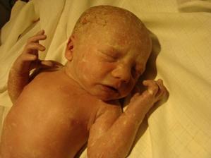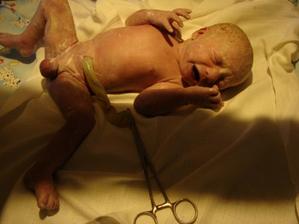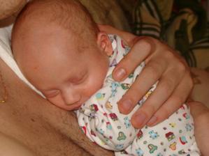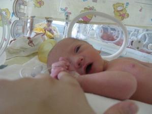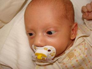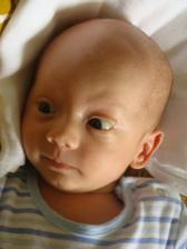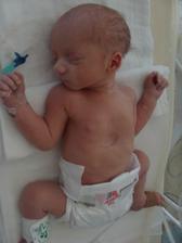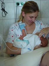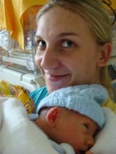 Matulku jsme naplánovali cestou z mejdanu, tuším že 26.10.07, a ještě ten večer se nám povedl 🙂 Bylo to štěstí převeliké a radost bezbřehá. 7.12. jsme byli na UZV na potvrzení srdeční akce, tam nám sdělili, že miminka byla dvě, jedno už je odejité, druhé naopak plné života a akční, pocity jsem měla smíšené, ale radost samozřejmě převládala 🙂 Oznámili jsme rodinám štastnou novinku a naplánovali svatbu - byli jsme spolu dva měsíce, tudíž všichni v našem okolí jen nevěřícně pokyvovali hlavami 🙂 17.1.08 jsme na UZV viděli miminko při vyšetření genetických vad celé, skákalo si v bazénku a dělalo salta 🙂 Byl to 12 tt a miminko měřilo 6,5 cm. Minul únor a přišel březen a svatba. V dubnu jsme se objednali na 4D uzv a konečně získali představu, jak náš Matýsek bude vypadat. Byl to celý tatínek 🙂 Během května, tj 27-28tt jsem začala mít potíže s tvrdnutím břicha. Doktor však tvrdil, že je to ok a v normě. 11.6. mi břicho začalo tvrdnout pravidelně a dostavil se nepříjemný pocit. Vyrazili jsme tedy večer do nemocnice, pro kontrolu a uklidnění.. Bohužel doktor prohlásil, že se jedná o předčasný porod (33+4), takže si nás tam nechali a tři týdny jsem se radovala z kapaček. V 36tt už nám medikace dával nemohli, ale v nemocnici jsme byli dál, ptz riziko bylo stále vysoké. Dva dny po vysazení kapaček jsem začala mít obrovské bolesti zad, ale porodu nic nenasvědčovalo. Shodila jsem 4kg a bolesti se stupnovaly. Za další dva dny se dostavily silné kontrakce. 36+4 už se nic brzdit dál nedalo, Matýsek spěchal na svět, byl ale otočený koncem pánevním a u vstupu měl nastrčenou nožku. Těhotenství bylo ukončeno císařským řezem předčasně ... více v druhém albu 🙂