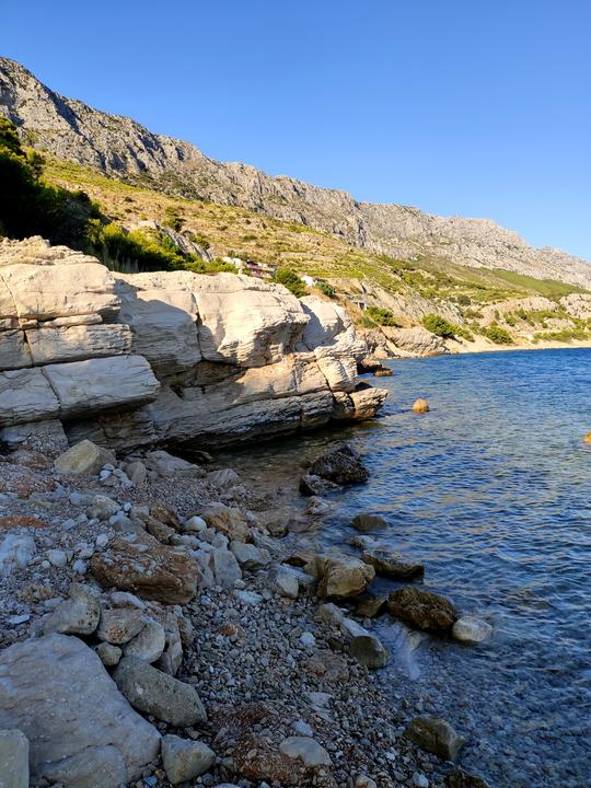 Druhý den už je to vcelku pohoda, všichni řádně vyspalí, moře i počasí je parádní, horko, nebe bez mráčků, krásných 28 stupňů ve stínu. Snad by mělo být nadále. Snad už si teď budeme jen užívat. 😁
