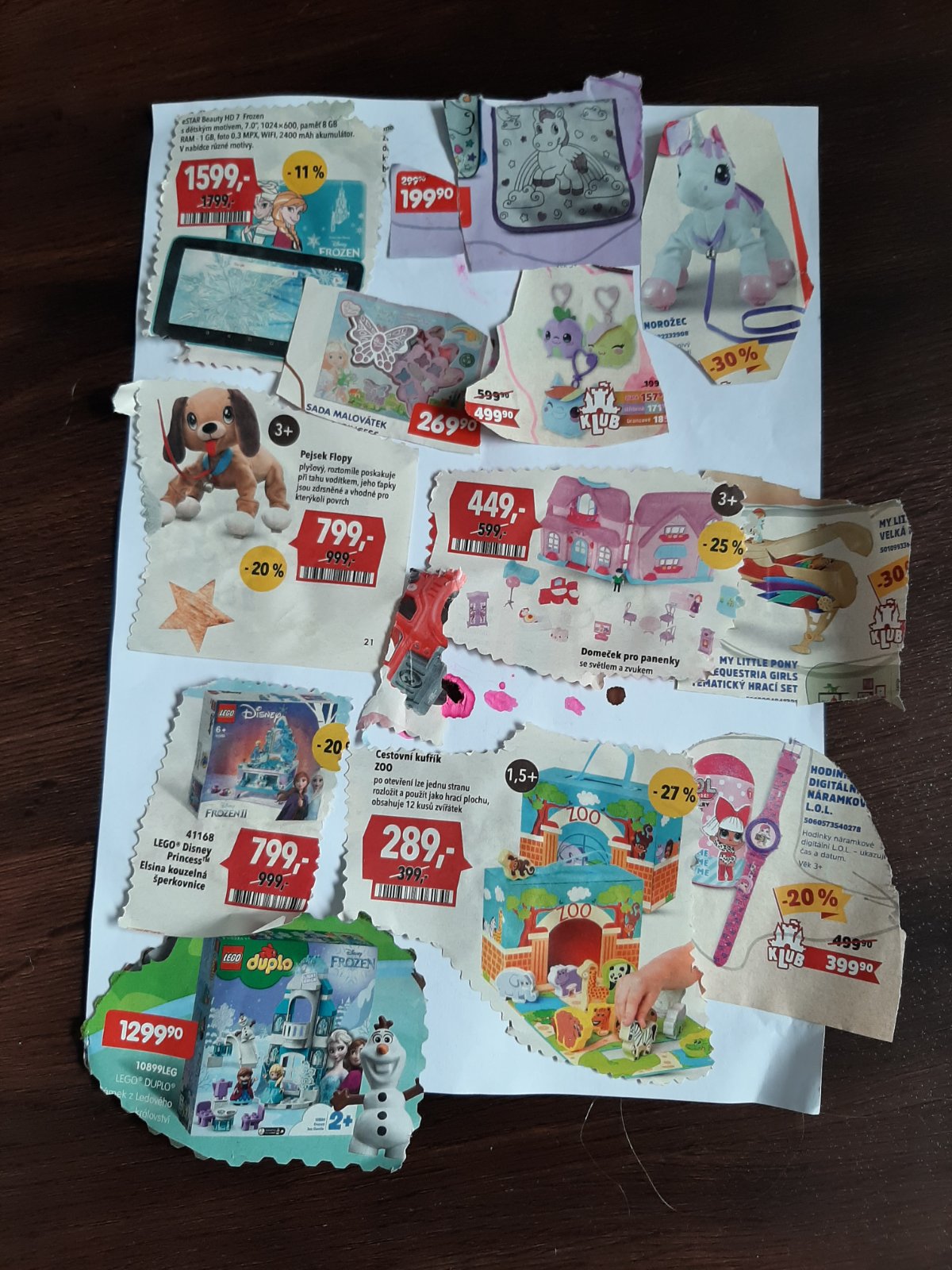 poprvé tvořila seznam, ale upřímně stříhala vše a pak lepila.. takže jsme vyrazili do hráčkarny a výběr upřesnili :)