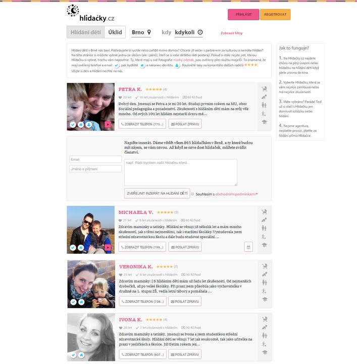 Každý den si u nás 3 rodiče najdou hlídání dětí. Navštivte nás také na http://www.hlidacky.cz