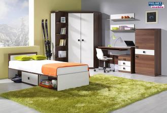 Moderní modulová sestava MAJKA je vyrobená z velmi kvalitního a odolného lamina, všechny hrany jsou zakončeny lištou ABS, nábytek je odolný vůči mechanickému poškození. Kolekce je vhodná především do dětského / studentského pokoje.